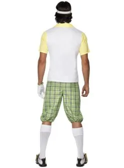Omvat geblokte bermuda’s, een shirt met strikje, witte cap en een handschoen.